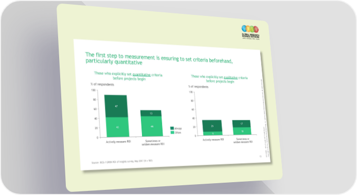 The first step to measurement is ensuring to set criteria beforehand, particularly quantitative Those who explicitly set quantitative criteria Those who explicitly set qualitative criteria before projects begin before projects begin % of respondents % of respondents All rights reserved. 100 100 80 80 60 47 60 esearch Business Network. 13 40 40 The Global R 20 43 44 20 26 17 Always Often 18 eport 0 0 9 Actively measure ROI Sometimes or Actively measure ROI Sometimes or seldom measure ROI seldom measure ROI The Boston Consulting Group, Inc. and Source: BCG / GRBN ROI of Insights survey, May 2017 (N = 187) 15 BCG GRBN - ROI of Insight 2017 Study RCopyright © 2017 by