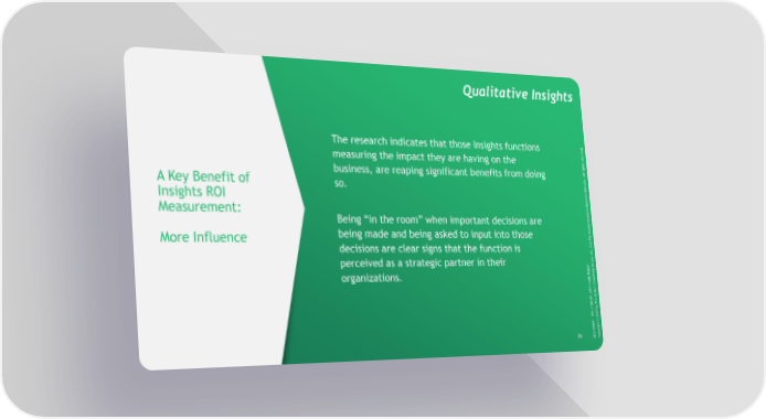 Qualitative Insights . d The research indicates that those Insights functions e v r e s e r s measuring the impact they are having on the t h g i r l l A business, are reaping significant benefits from doing . k r o w A Key Benefit of t so. e N s s e n i Insights ROI s u B ch r Measurement: a e s e R Being “in the room” when important decisions are l a b o l G being made and being asked to input into those e Th More Influence d n a decisions are clear signs that the function is c. n I , p u o perceived as a strategic partner in their t r r G o p g e n i R t l organizations. y u d s u n t Co S 7 n 1 o 0 t 2 s o t B ghe i s Th In y f b o 7 OI 1 R 0 2 - © N B t h g i GRr G y C p 26 B Co
